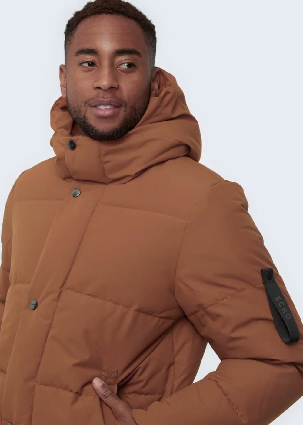 Stylish and warm winter ECHO coat for men.  Made from warm insulating cotton, Nylon and fleece fabric which have been sourced and manufactured sustainably and to a high ethical standard.